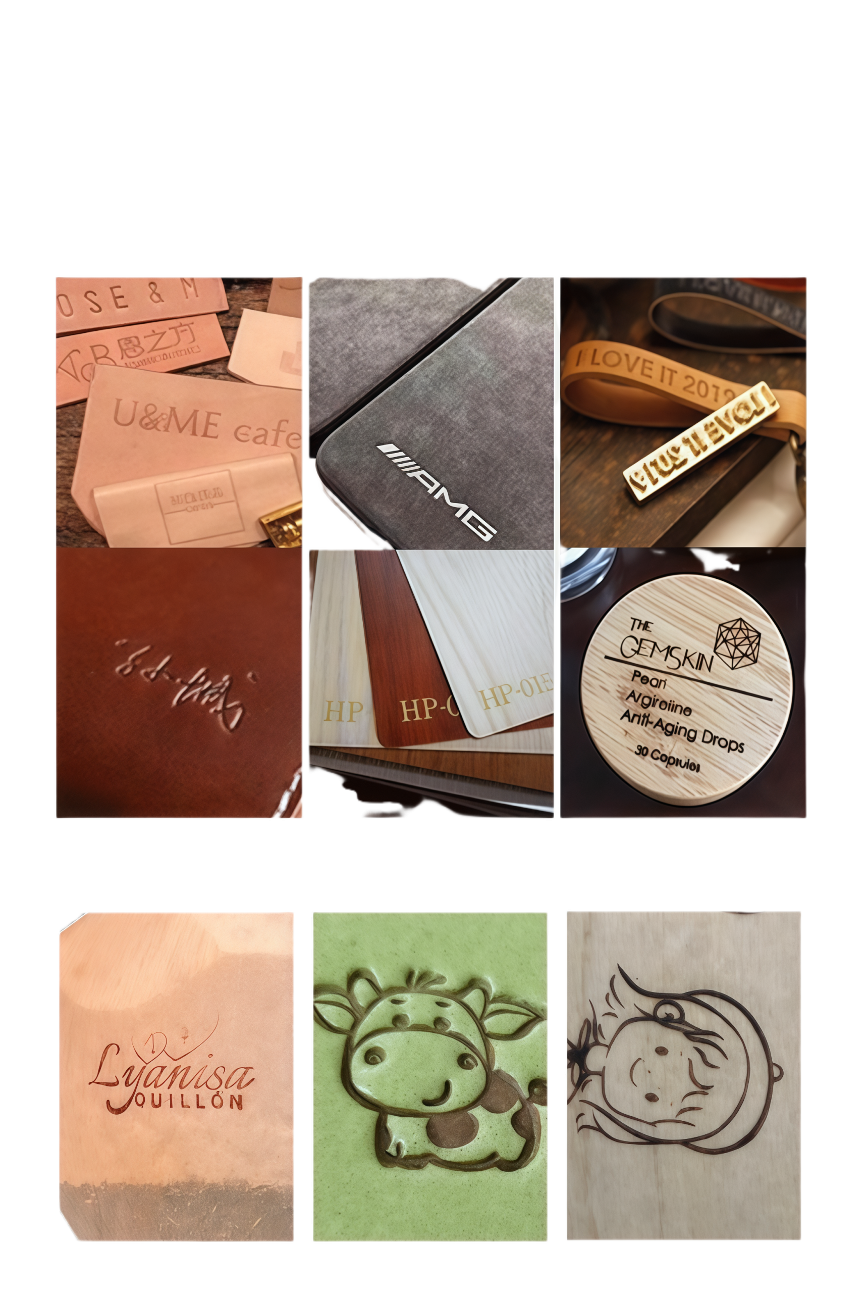 Works seamlessly on diverse surfaces: paper (cards, gift boxes), leather (wallets,bracelets), plastic (phone cases, keychains), wood (small crafts), and fabric (canvas bags). Its handheld design easily adapts to curved, irregular, or small workpieces (e.g., cylindrical pen barrels, tiny resin charms) that fixed machines can’t reach.