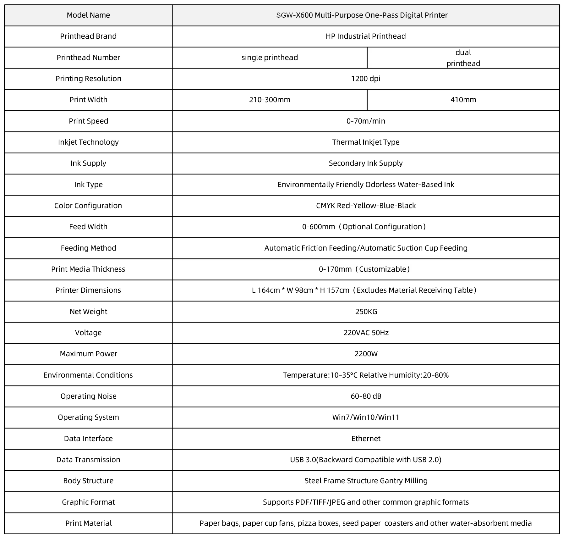 - Industrial piezo printheads, max 1200×2400 DPI high-precision printing