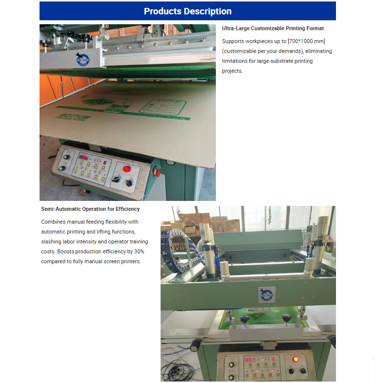 Semi-Automatic Large Flat Bed Screen Printing Machine Description