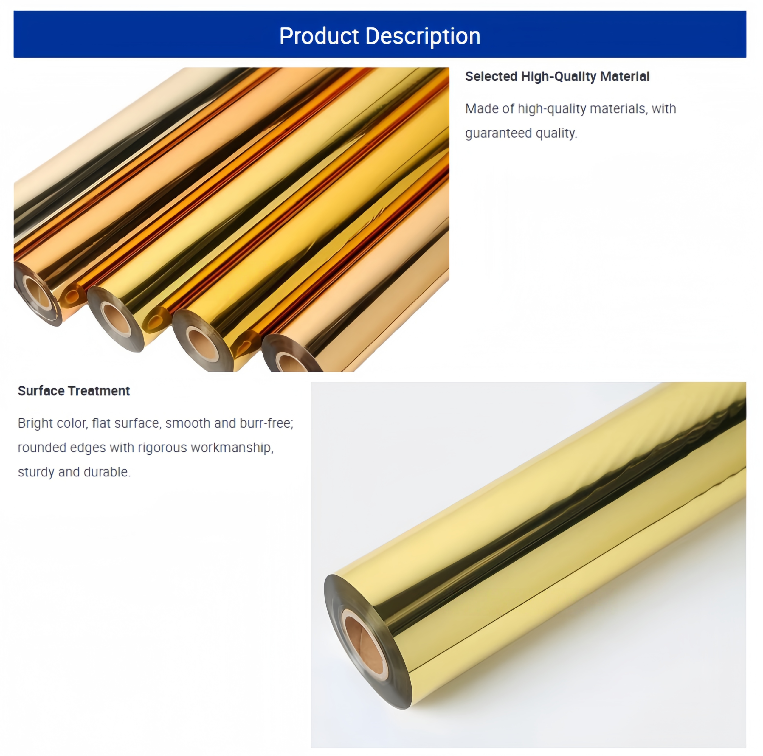 Applied to gift boxes, jewelry boxes, perfume boxes, wine boxes, and cosmetic packaging; creates a high-end metallic finish to enhance brand premium and attract consumers.